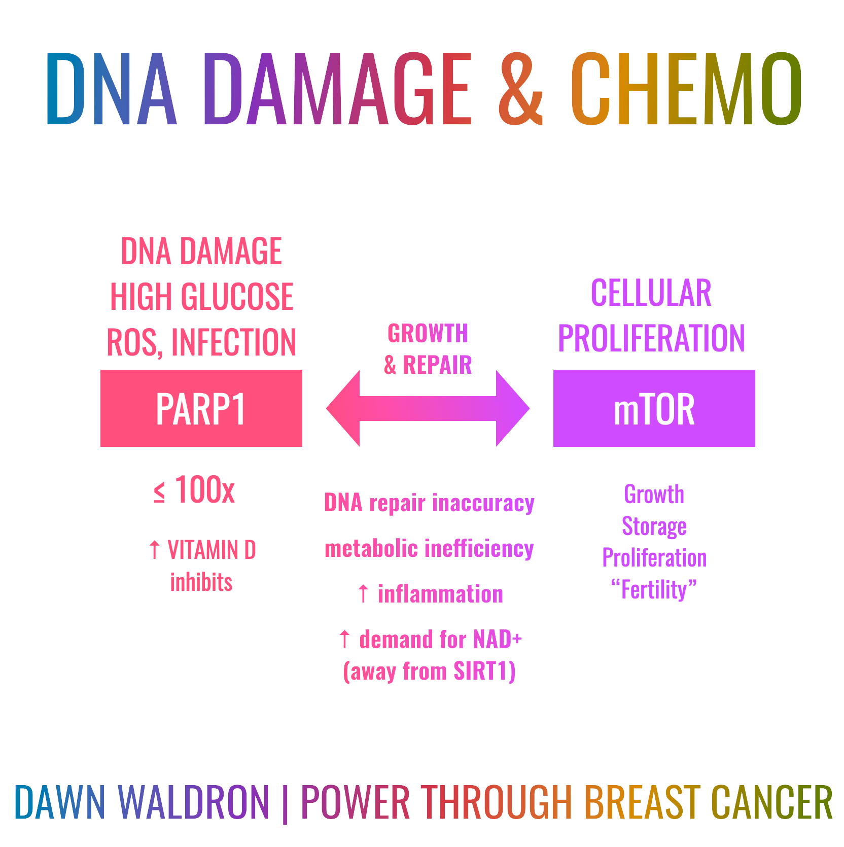 But that’s not the only reason we suffer after chemo: your system will also be dealing with cell debris from billions of damaged cells. Large scale necrotic cell death sets off a massive inflammatory cascade, triggering a reciprocal DNA growth response to replace lost cells. The drugs tend to work by increasing oxidative stress inside the target cells, and by inhibiting the use of folate (Vitamin B9) for cell replication. They are, of course, highly toxic and must be broken down in the liver and digestive tract, and then eliminated. Then steroids, routinely used to buffer cell damage, irritate the stomach, raise blood sugar, induce sugar cravings, impact mood and cause insomnia. Meanwhile, your microbiome also suffers wholesale liquidation.