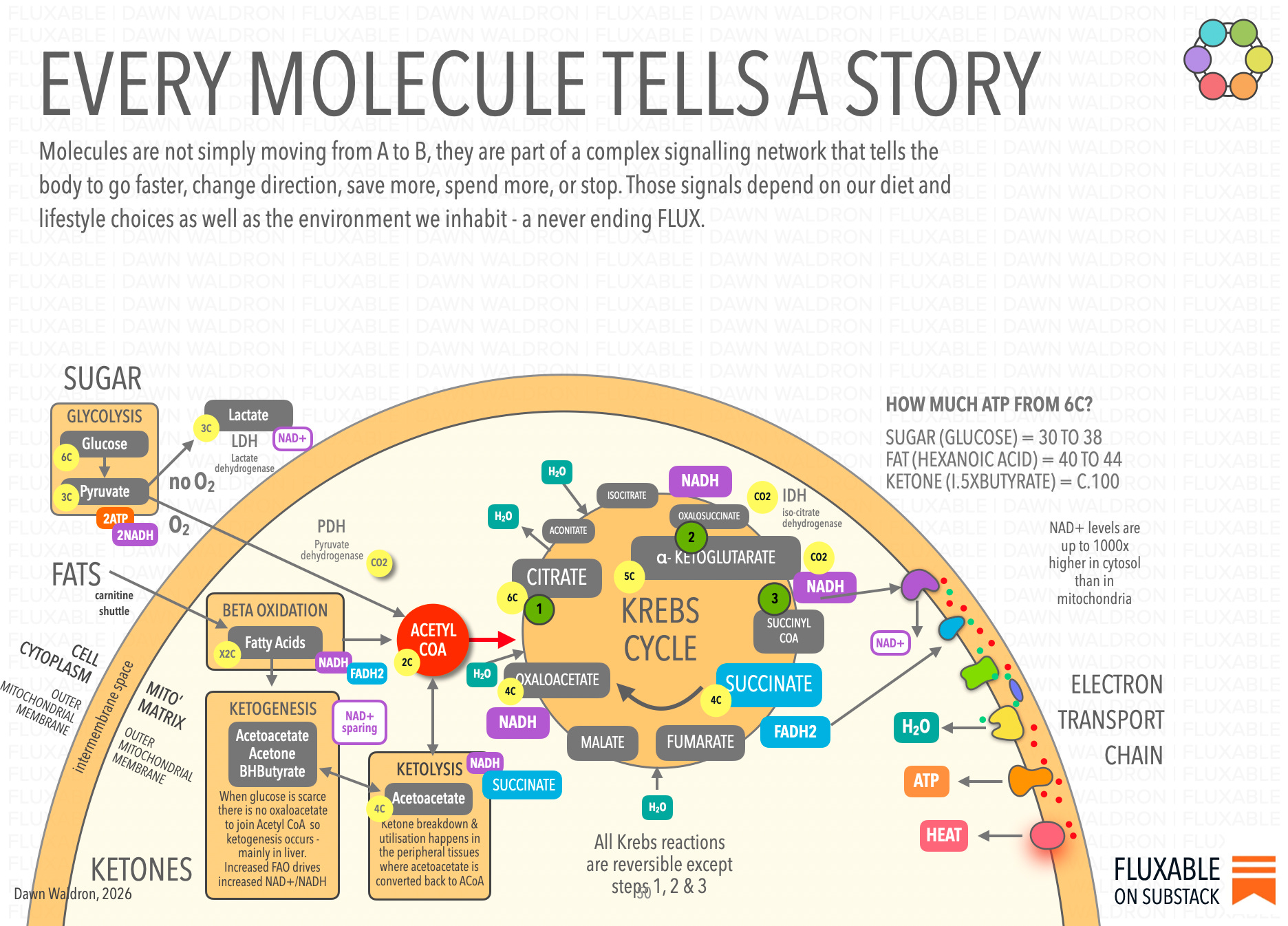 The Fluxable Framework has at its core a detailed understanding of energy production and biosynthesis within the mitochondria, and the implications for the whole body. Focussing primarily on the dynamics of the electron transport chain in maintaining mitochondrial function and cellular differentiation, the course will highlight the importance of flux for all body systems together with the diet and lifestyle choices that can support optimal metabolic function.